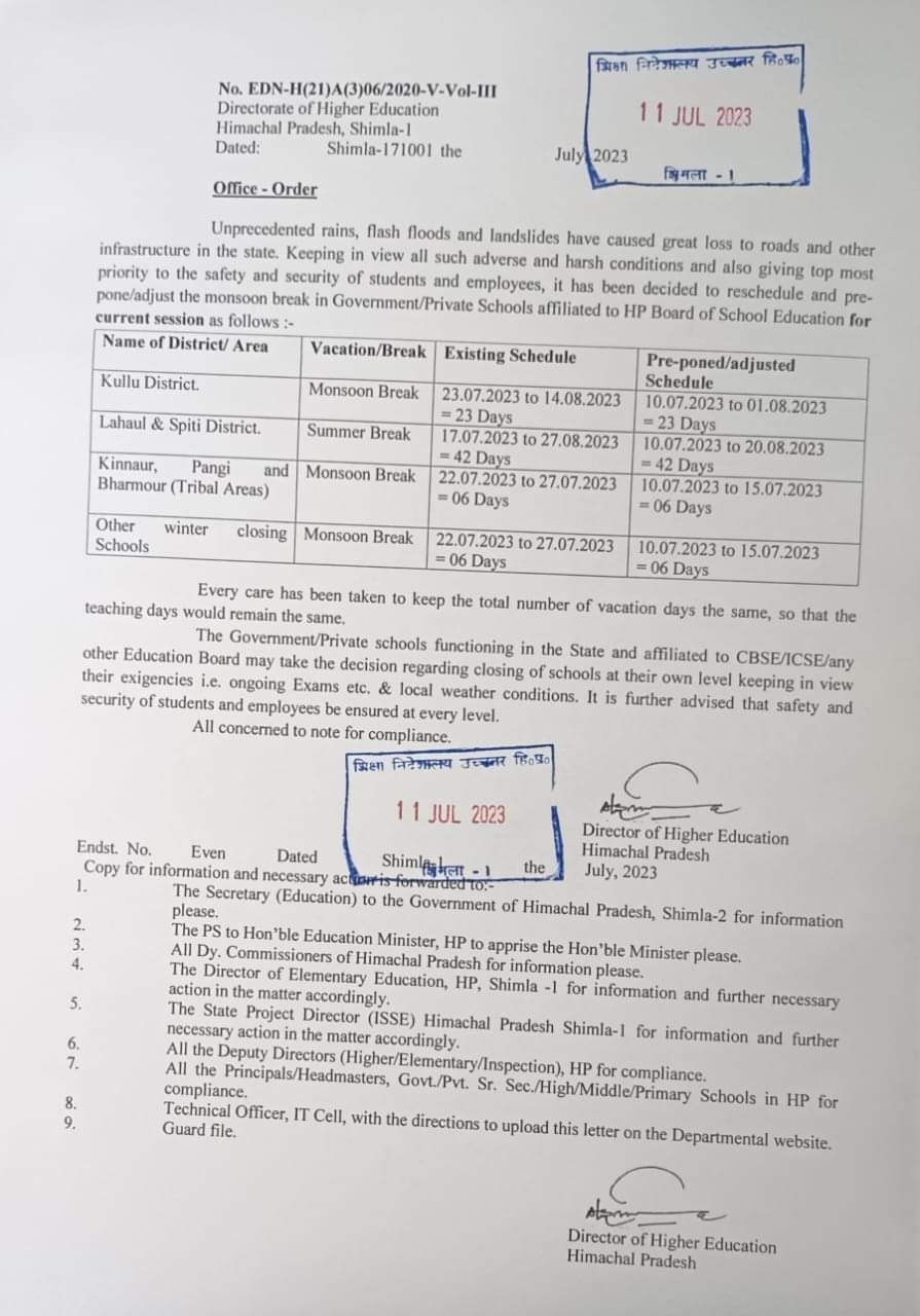 हिमाचल: प्रदेश के स्कूलों में मानसून की छुट्टियों में बदलाव…