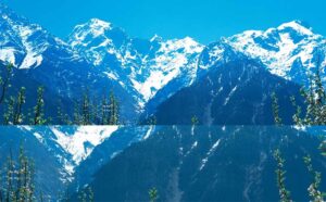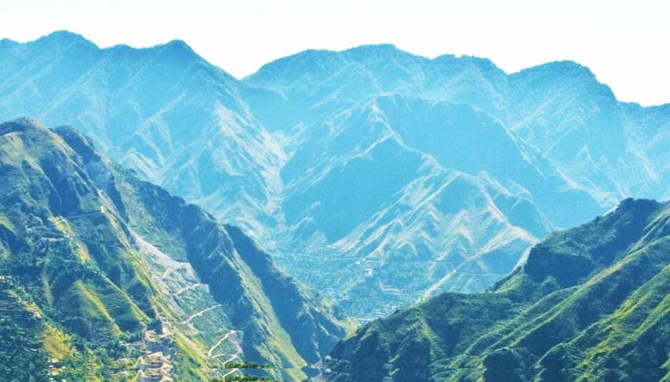 घाटी में ऊंचे हरे भरे चीड़ एवं देवदार के मनमोहक गगनचुंबी वृक्ष