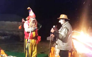 जब वाद्य-यन्त्रों पर बजन्तरी बधाई धुन बजाते हैं, लोक-नाट्य के दो प्रमुख पात्र ‘चन्द्रावली‘ और ‘सिद्ध‘ एक पर्दे के पीछे से जिसे दो व्यक्ति तानकर खड़े होते हैं, अखाड़े में प्रवेश करने की तैयारी करते हैं। कुछ छन्दों का गान होता है और पर्दा गिरा दिया जाता है। दोनों पात्र धीरे-धीरे, शान के साथ भीड़ में से अपना रास्ता बनाते हुए अखाड़े में प्रवेश करते हैं। नटी और सिद्ध जलती आग के चारों ओर नाचते हैं। सिद्ध अखाड़े के चारों ओर रखी या खम्बों पर टैंगो मशालों अथवा मिट्टी के बर्तनों में पड़े पदार्थों को एक-एक करके जलाता है।