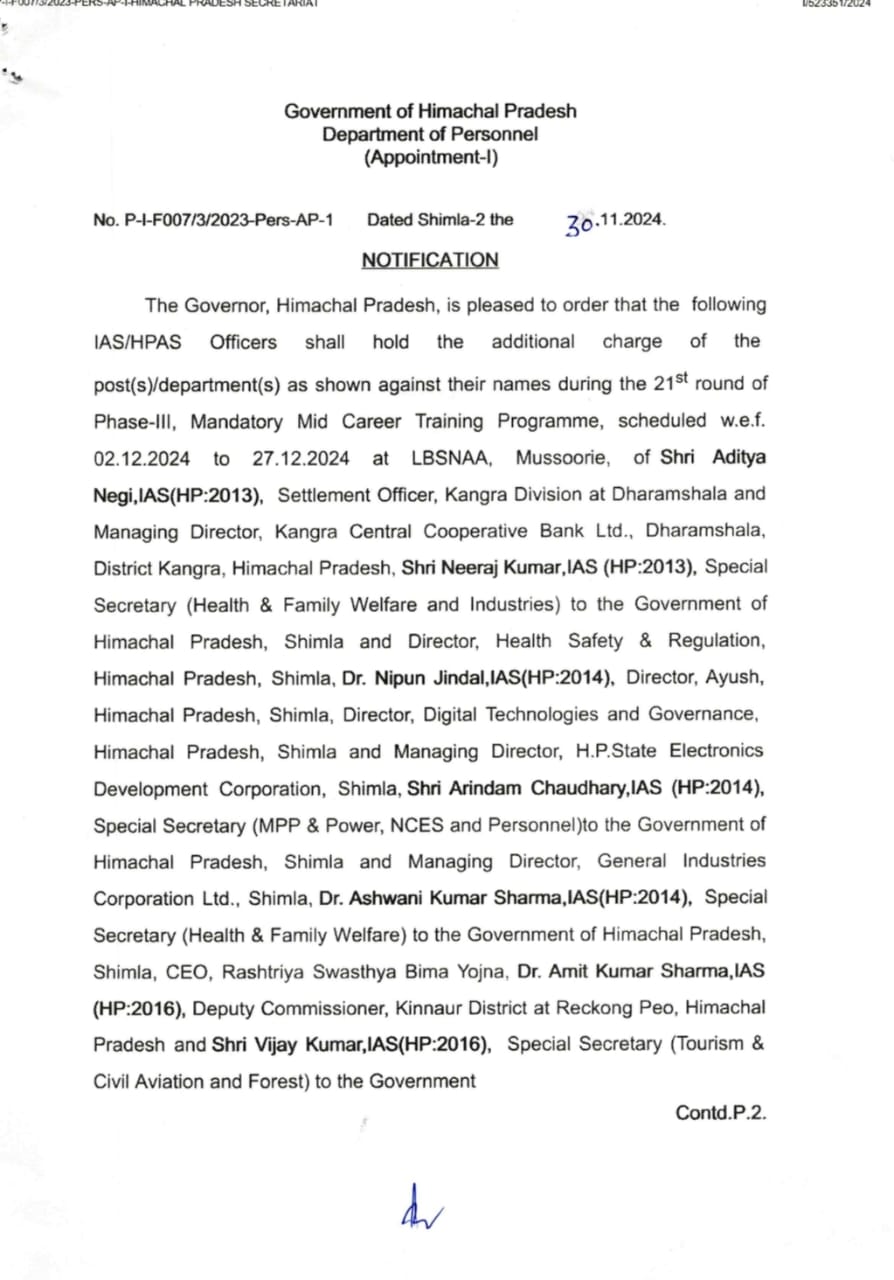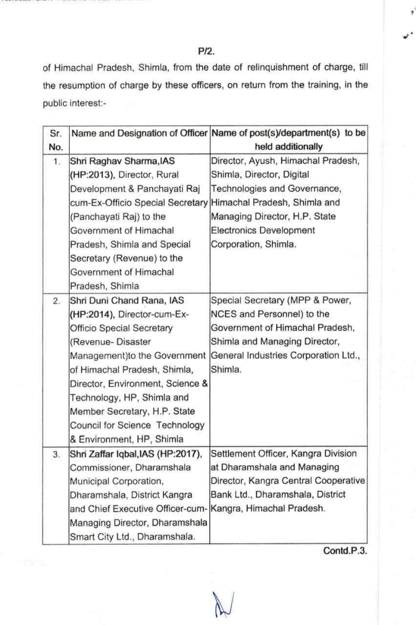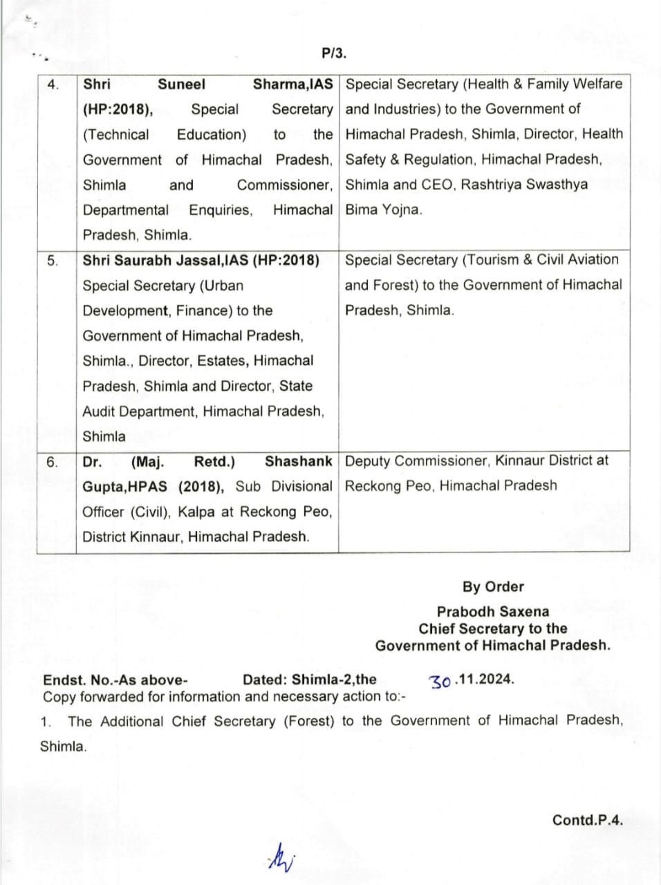 हिमाचल: प्रदेश में प्रशासनिक फेरबदल…