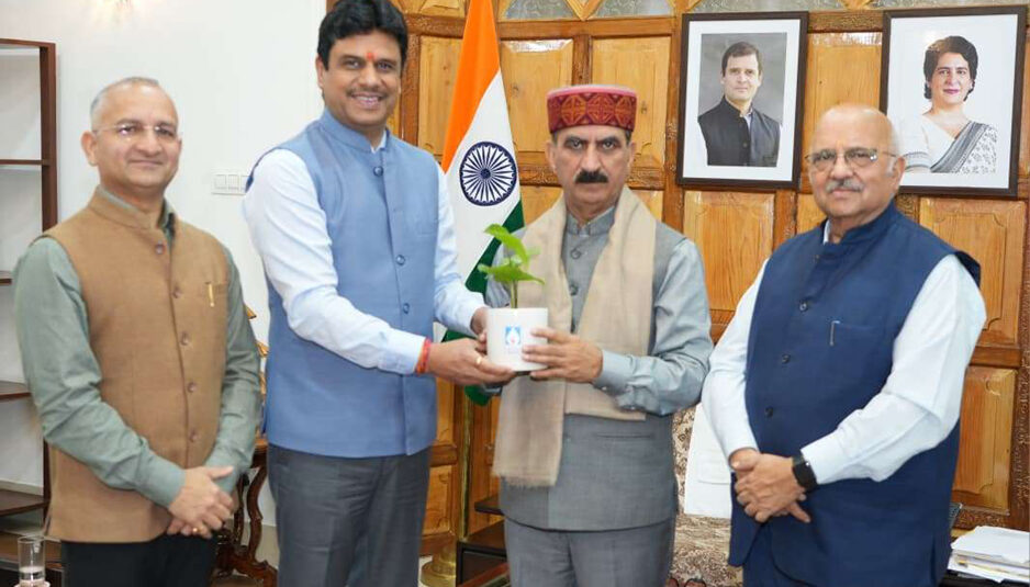 एसजेवीएनएल के सीएमडी भूपेंद्र गुप्ता और निदेशक अजय शर्मा ने की मुख्यमंत्री सुक्खू से शिष्टाचार भेंट शिमला: एसजेवीएनएल के अध्यक्ष एवं प्रबंध निदेशक भूपेंद्र गुप्ता ने आज मुख्यमंत्री ठाकुर सुखविन्द्र सिंह सुक्खू से शिष्टाचार भेंट की। इस अवसर पर कंपनी के निदेशक अजय शर्मा और सलाहकार एम.पी. सूद भी मौजूद रहे।