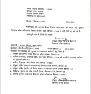 हिमाचल: 15 सितंबर को होगी कैबिनेट बैठक