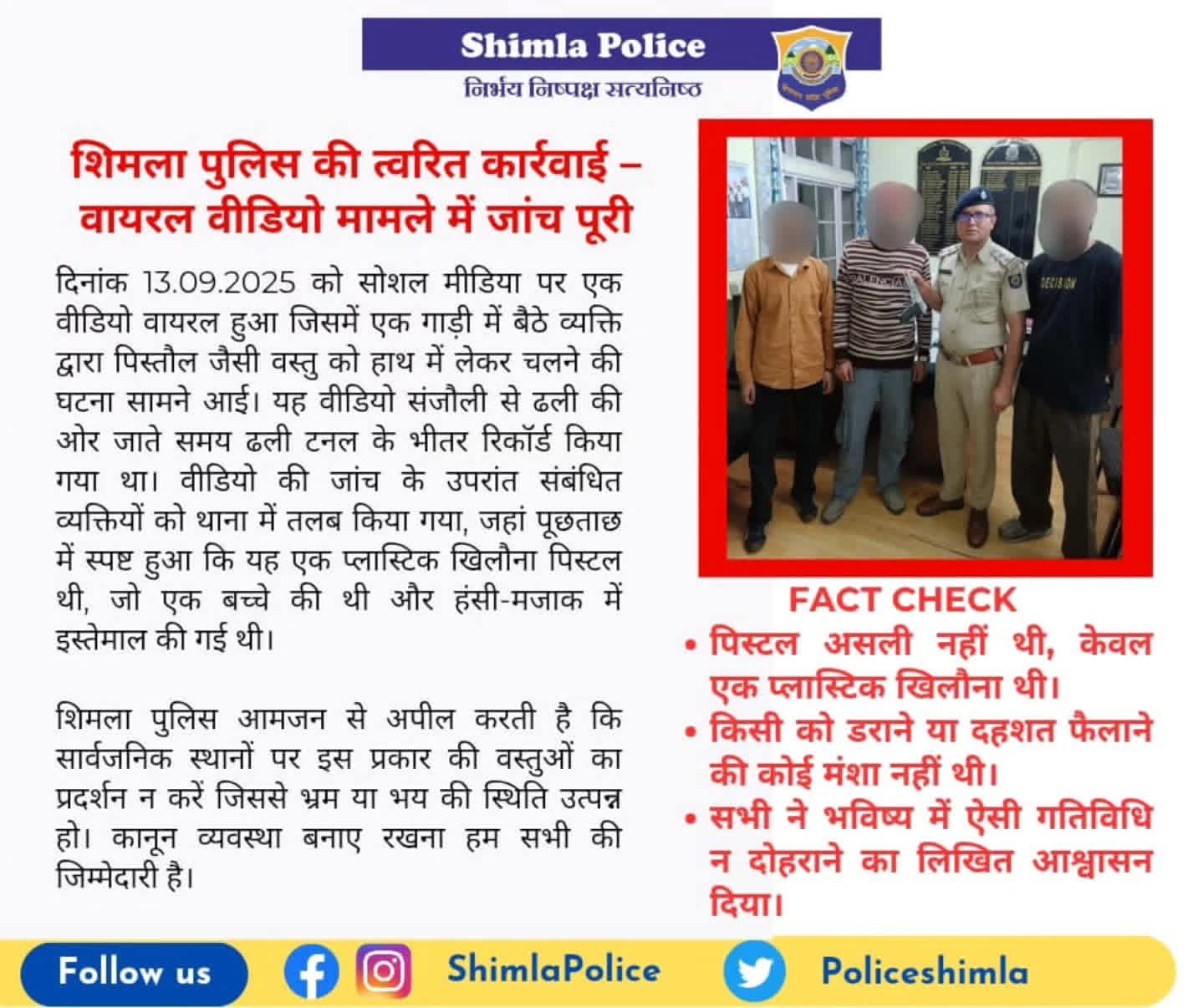 शिमला: चलती कार से पिस्टल लहराने का वीडियो वायरल; जांच में निकला प्लास्टिक का पिस्टल