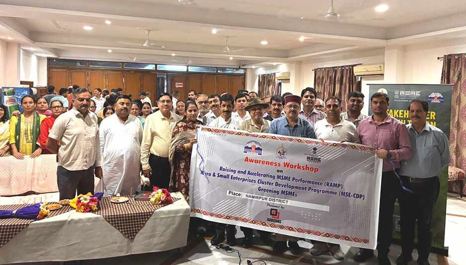 हमीरपुर : उद्योग विभाग हिमाचल प्रदेश सरकार ने जिला हमीरपुर में एक जागरूकता कार्यशाला का आयोजन किया। इस कार्यशाला का उद्देश्य राज्य में सूक्ष्म, लघु एवं मध्यम उद्यम (एमएसएमई) पारिस्थितिकी तंत्र को मजबूत बनाना, प्रतिस्पर्धात्मकता को बढ़ावा देना, सतत औद्योगिक प्रथाओं को प्रोत्साहित करना तथा सरकारी पहलों के माध्यम से उद्यमिता विकास को गति प्रदान करना था।