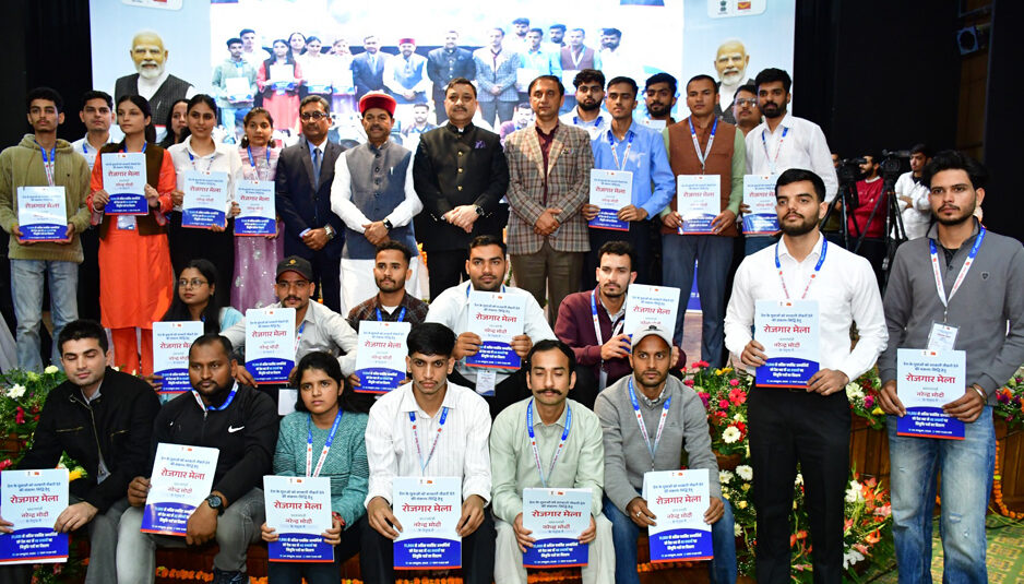 शिमला: रोजगार मेले के अंतर्गत आज देशभर में 40 स्थानों पर रोजगार मेले का आयोजन किया गया | प्रधानमंत्री नरेंद्र मोदी ने विडियो कॉन्फ्रेंसिंग के माध्यम से 51 हजार से अधिक युवाओं को विभिन्न प्रतिष्ठानों में नव नियुक्ति कर्मचारियों को नियुक्ति पत्र वितरित किए| शिमला में आयोजित रोजगार मेले में मुख्य अतिथि के तौर पर राज्य मंत्री उपभोक्ता मामले, खाद्य और सार्वजनिक वितरण मंत्रालय, बीएल वर्मा मौजूद रहे। शिमला से सांसद सुरेश कश्यप भी कार्यक्रम में मौजूद रहे। केंद्रीय आलू अनुसंधान संस्थान शिमला में आयोजित इस कार्यक्रम में विभिन्न विभागों के 93 नवनियुक्त युवाओं को नियुक्ति पत्र वितरित किए गए जिसमें 25 नवनियुक्त अभ्यर्थियों को मुख्य अतिथि केंद्रीय राज्य मंत्री बी.एल. वर्मा ने व अन्य नव नियुक्त युवाओं को मुख्य पोस्टमास्टर जनरल द्वारा नियुक्ति पत्र वितरित किए।