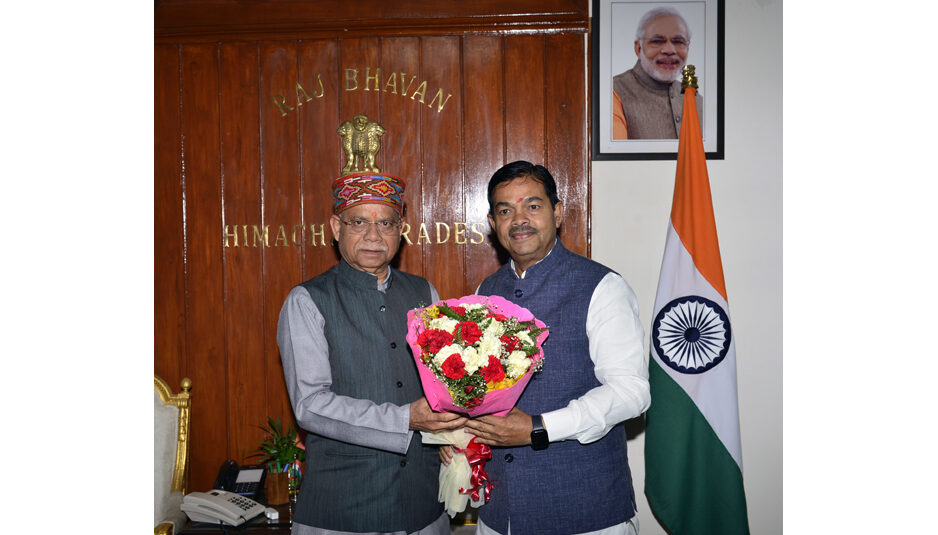 शिमला: उपभोक्ता मामले, खाद्य एवं सार्वजनिक वितरण राज्य मंत्री बी.एल. वर्मा ने आज राजभवन में राज्यपाल शिव प्रताप शुक्ल से शिष्टाचार भेंट की। राज्यपाल ने उन्हें हिमाचली टोपी और शॉल भेंट कर सम्मानित किया। इस अवसर पर सांसद सुरेश कश्यप एवं राज्यपाल के सचिव सी.पी. वर्मा भी उपस्थित थे।