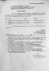 हिमाचल: 9 नवंबर को आयोजित होगी हिमाचल पुलिस की बी-1 परीक्षा