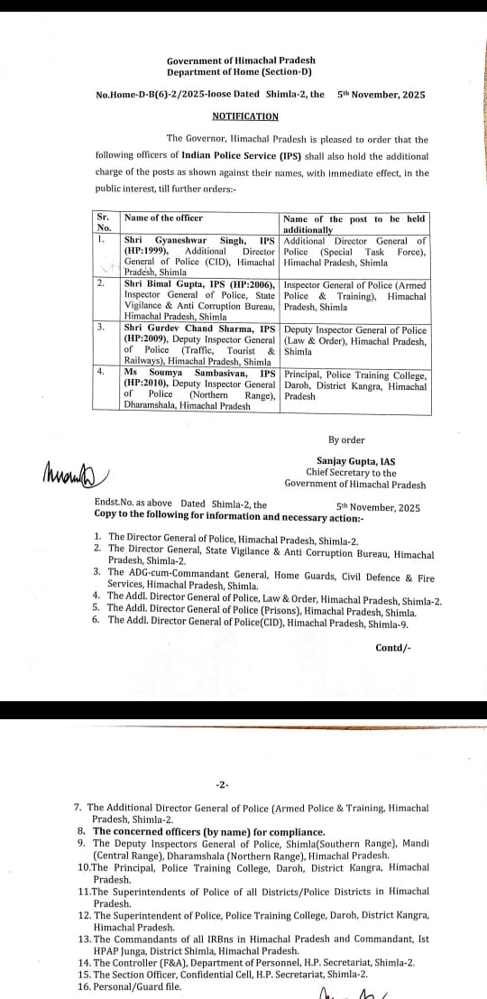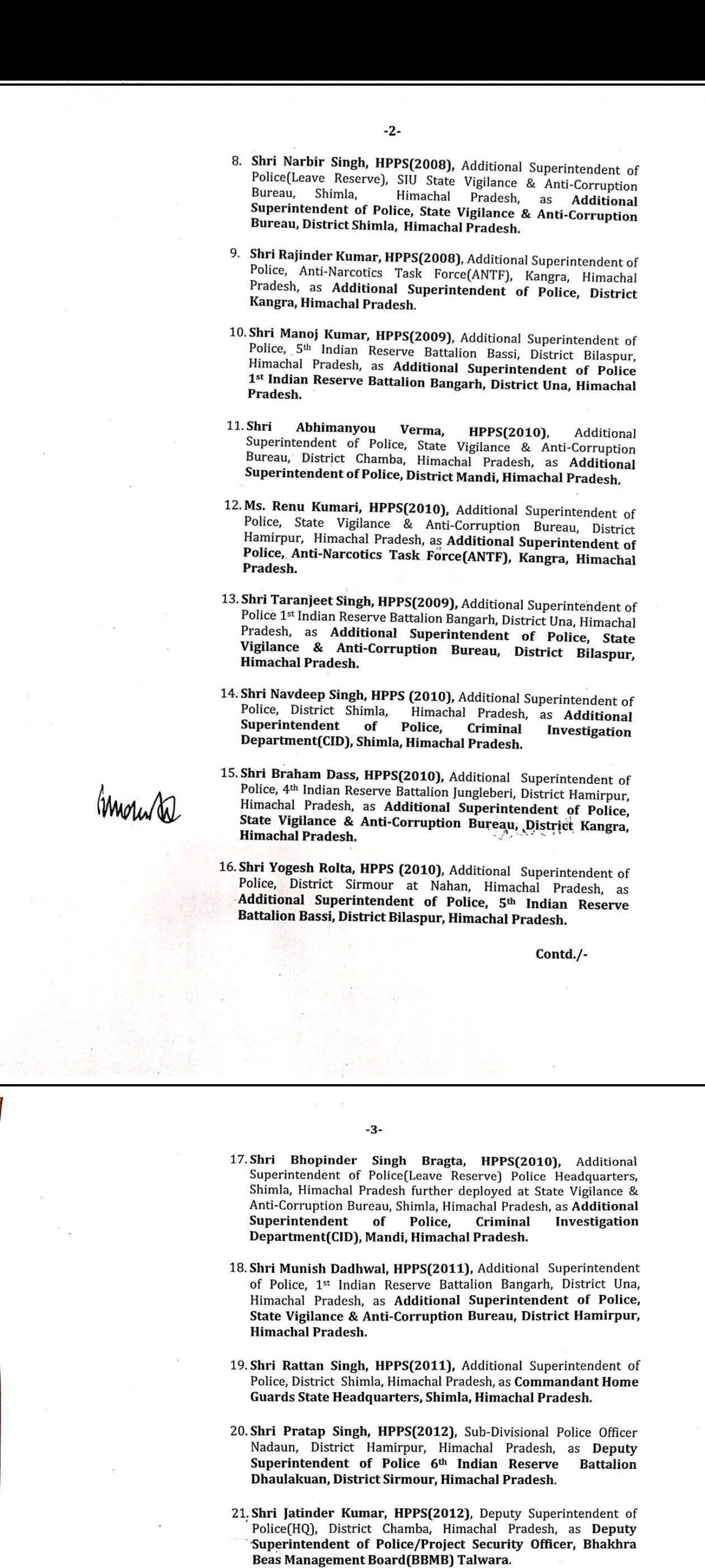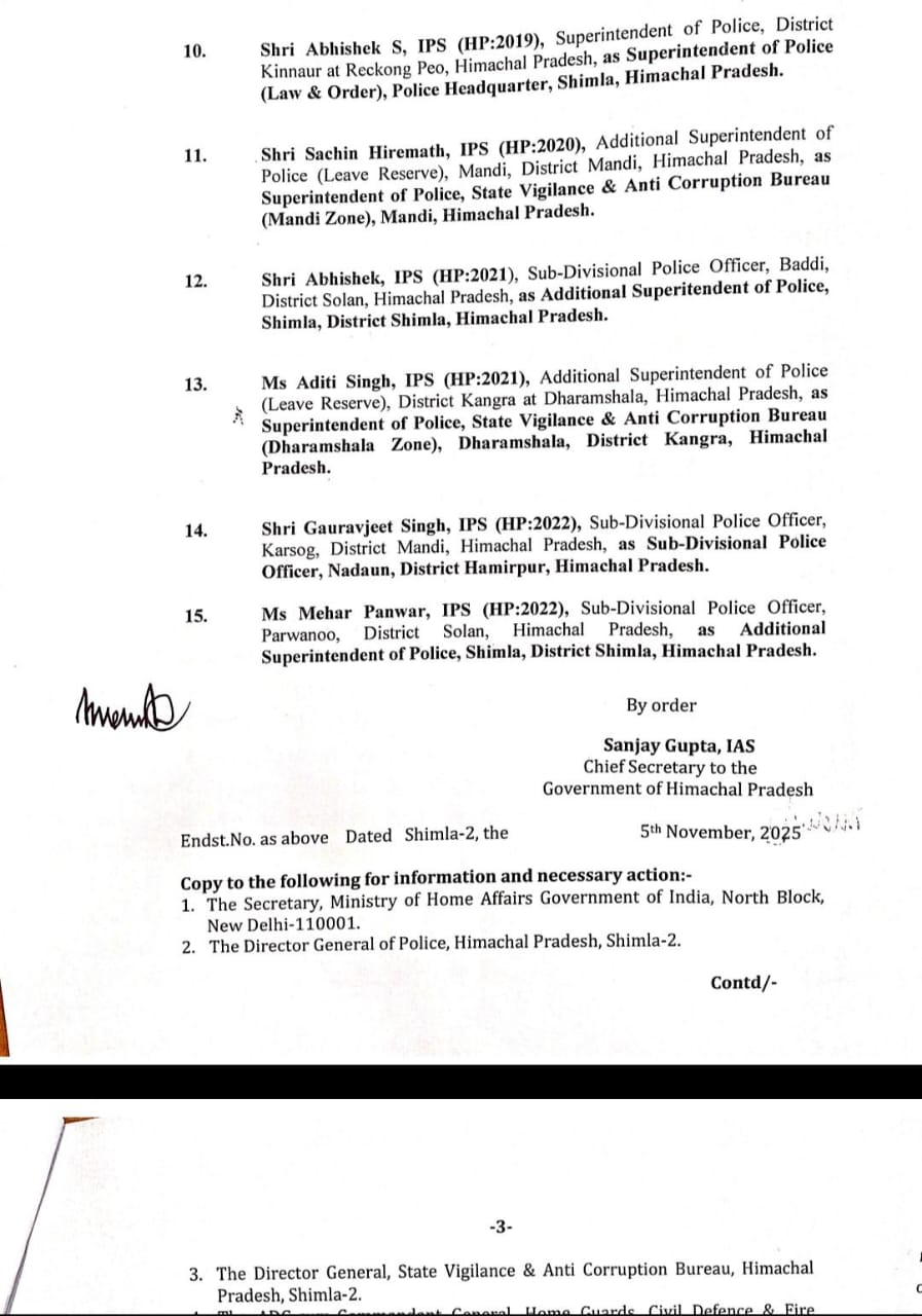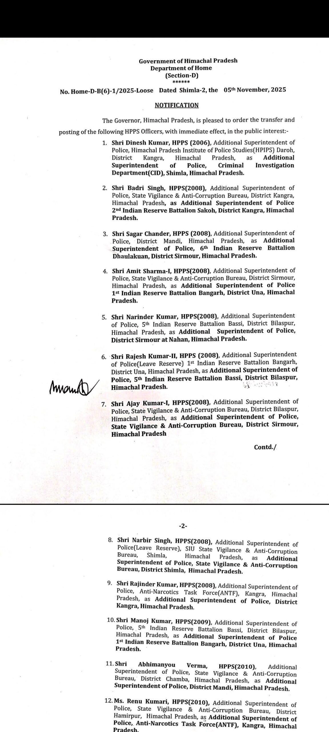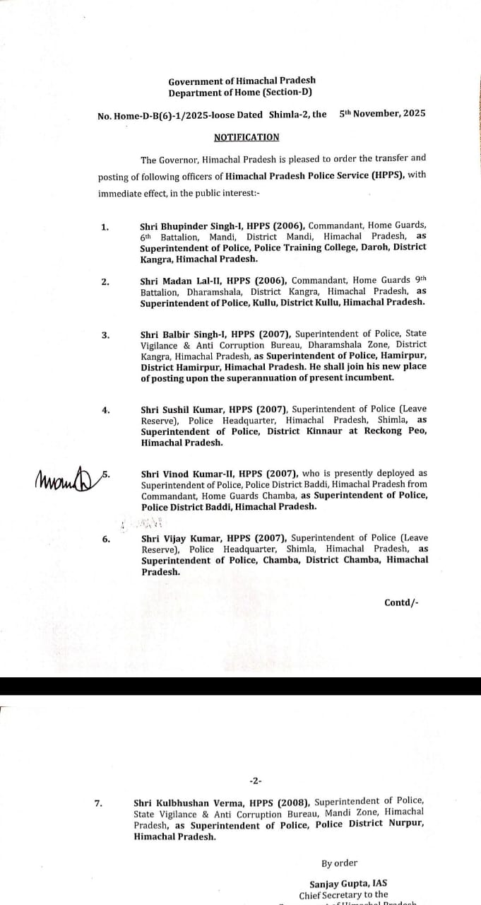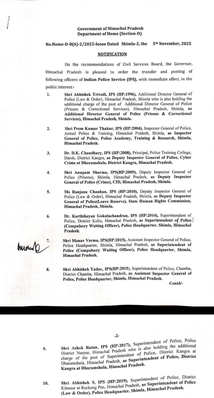 हिमाचल: प्रदेश में प्रशासनिक फेरबदल..