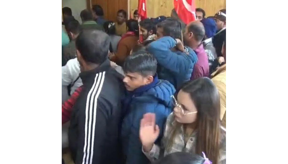 नगर निगम शिमला के ऑफिस में तहबाजारी यूनियन ने किया धरना प्रदर्शन