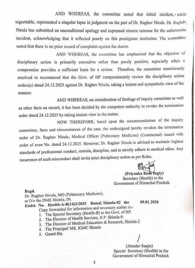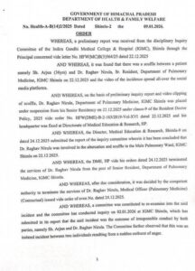 - शिमला IGMC मारपीट मामला: प्रदेश सरकार ने डॉ. राघव निरूला की सेवाएं की बहाल