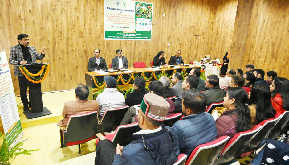 सोलन: भारतीय कृषि अनुसंधान परिषद द्वारा प्रायोजित ‘अनुकूलित मूल्य श्रृंखला के माध्यम से बागवानी फसलों में कृषि उद्यमिता को बढ़ावा देना,’ विषय पर आयोजित 21 दिवसीय विंटर स्कूल का आज डॉ. यशवंत सिंह परमार औद्यानिकी एवं वानिकी विश्वविद्यालय, नौणी में शुभारंभ हुआ। इस प्रशिक्षण कार्यक्रम का आयोजन विश्वविद्यालय के खाद्य विज्ञान एवं प्रौद्योगिकी विभाग द्वारा किया जा रहा है।