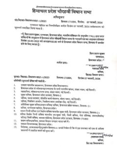 शिमला: हिमाचल प्रदेश विधान सभा अध्यक्ष कुलदीप सिंह पठानिया ने कहा कि चौदहवीं विधान सभा का ग्यारहवां सत्र दिनांक 16 फरवरी से अपराह्न 2:00 बजे आरम्भ हो रहा है। उन्होंने कहा कि राज्यपाल की संस्तुती के उपरान्त विधान सभा सचिवालय द्वारा आज इसकी अधिसूचना जारी कर दी गई है। पठानिया ने कहा कि सत्र का शुभारम्भ राज्यपाल महोदय के अभिभाषण के साथ अपराह्न 2:00 बजे होगा। पठानियां ने कहा कि राज्यपाल महोदय के अभिभाषण उपरान्त शोकोदगार तथा विधायी कार्य (Legislative Work) शुरू होंगे।