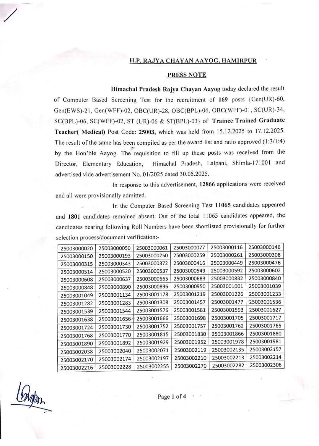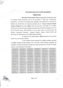 हिमाचल: TGT (मेडिकल) पोस्ट कोड- 25003 का रिजल्ट घोषित..