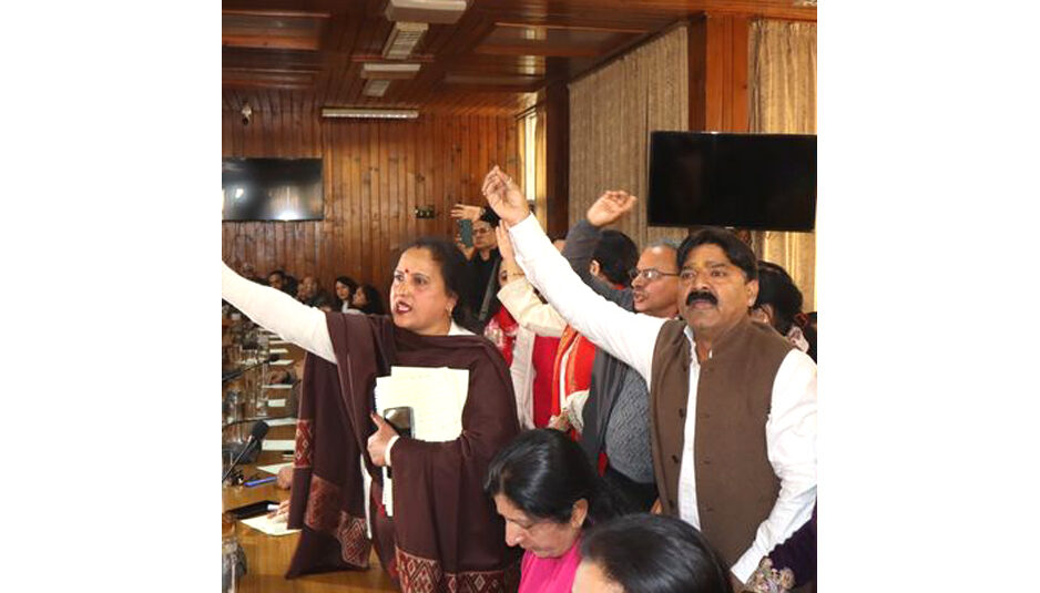शिमला: राजधानी शिमला में नगर निगम सदन में महापौर सुरेंद्र चौहान ने जैसे ही बजट भाषण पढ़ना शुरू किया। भाजपा पार्षदों ने हंगामा शुरू कर दिया। नगर निगम शिमला के बजट सत्र में भाजपा पार्षदों ने मेयर के अधिकारों पर सवाल उठाते हुए बजट प्रक्रिया को ही अवैध करार दिया। उनका कहना है कि मेयर का ढाई वर्ष का कार्यकाल पूरा हो चुका है और कार्यकाल बढ़ाने से संबंधित एक्ट अभी कानून का रूप नहीं ले पाया है। भाजपा पार्षदों ने आरोप लगाया कि इस प्रस्ताव को अभी तक राज्यपाल की स्वीकृति नहीं मिली है और मामला न्यायालय में भी लंबित है। ऐसे में मौजूदा मेयर द्वारा बजट पेश करना नियमों के खिलाफ है। पार्षदों ने सवाल उठाया कि जब कार्यकाल समाप्त हो चुका है तो मेयर किस अधिकार से नगर निगम का वार्षिक बजट प्रस्तुत कर रहे हैं। भाजपा पार्षदों ने वर्ष 2026-27 के बजट का विरोध करते हुए सदन की कार्यवाही का बहिष्कार कर दिया। बजट पेश होने से ठीक पहले सदन में तीखी नोकझोंक और विरोध के कारण माहौल तनावपूर्ण हो गया।