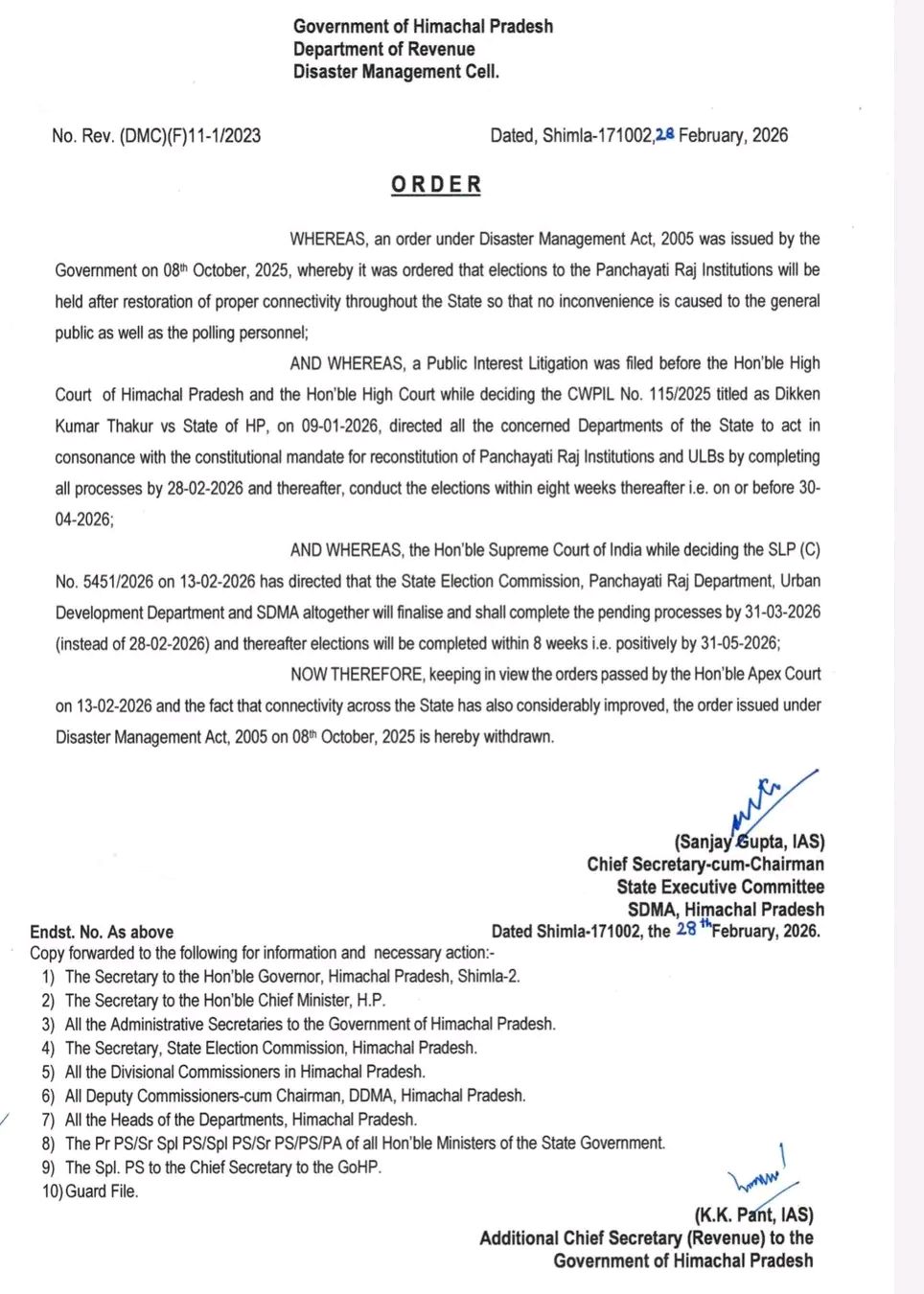 हिमाचल: प्रदेश सरकार ने डिजास्टर एक्ट हटाया..