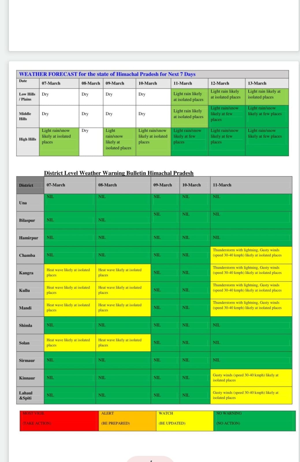 कांगड़ा, मण्डी, कुल्लू और सोलन में हीट वेव का यलो अलर्ट