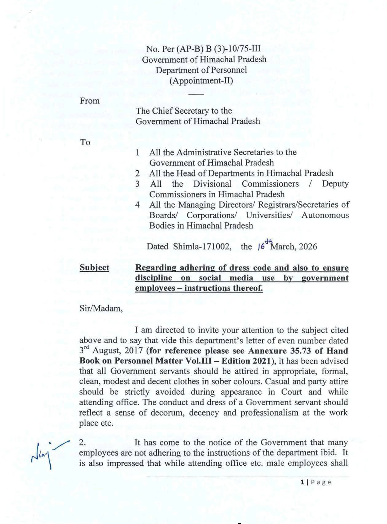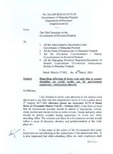 हिमाचल: प्रदेश सरकार ने दिए सरकारी कर्मचारियों को ड्रेस कोड लागू करने के आदेश…