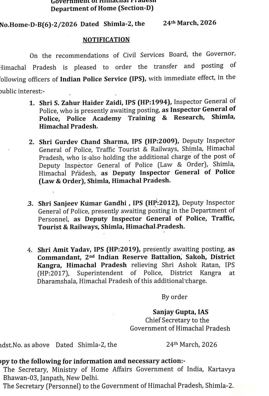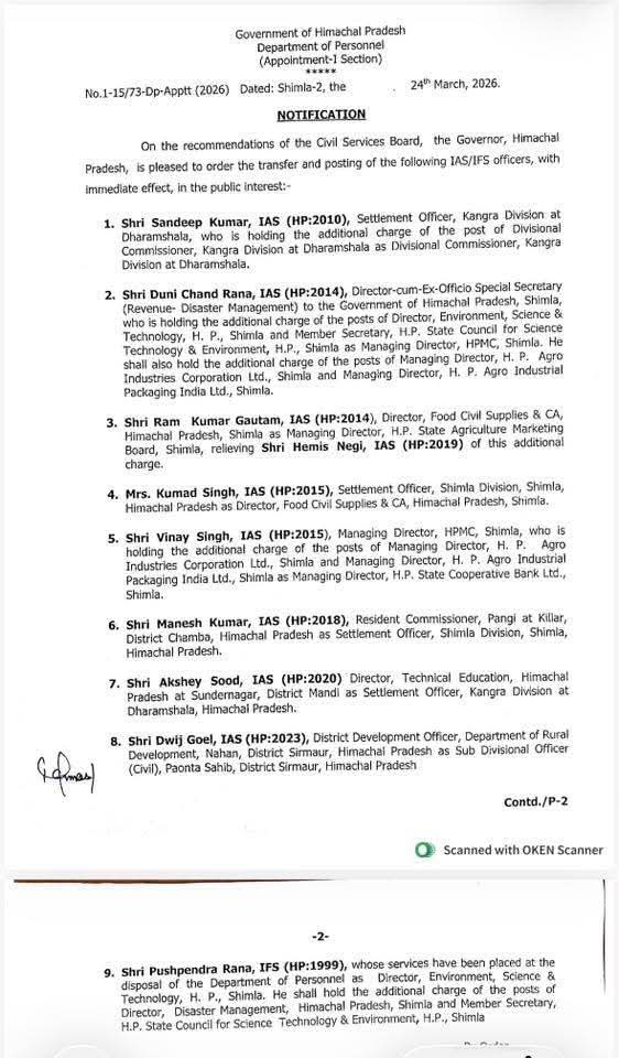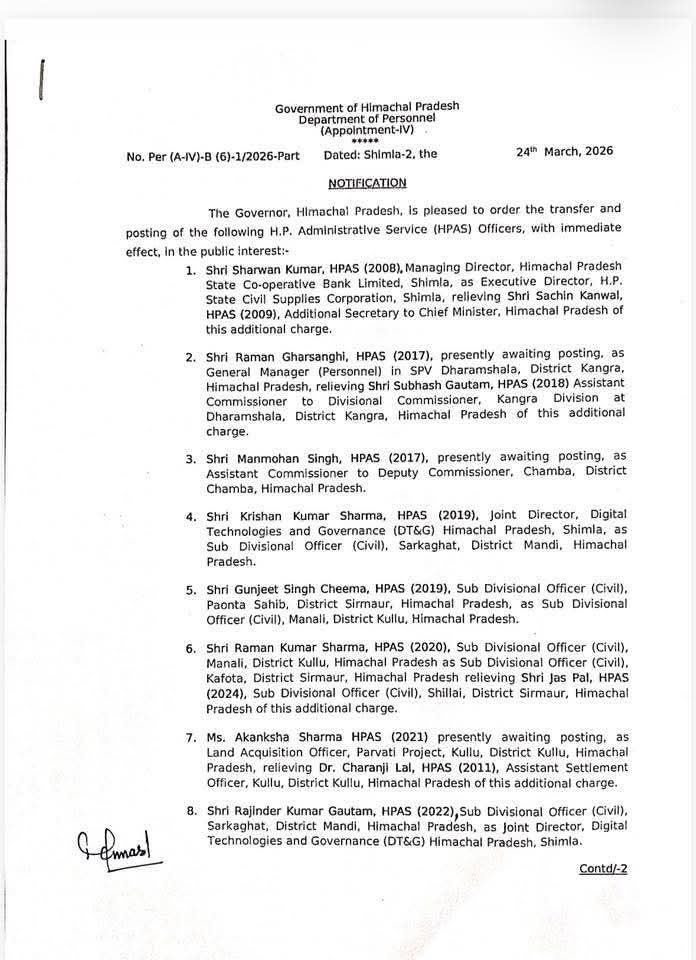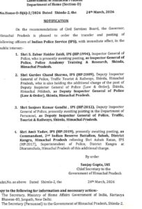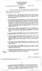 हिमाचल: प्रदेश में प्रशासनिक फेरबदल…