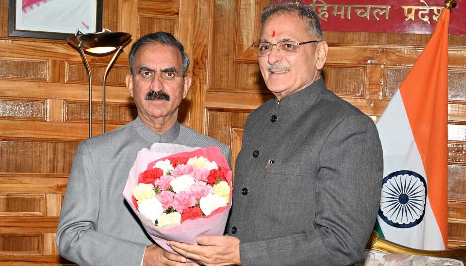 शिमला: मुख्यमंत्री ठाकुर सुखविन्द्र सिंह सुक्खू ने आज लोक भवन में राज्यपाल कविन्द्र गुप्ता से शिष्टाचार भेंट की। इस अवसर पर मुख्यमंत्री ने राज्यपाल को पारंपरिक हिमाचली टोपी, शॉल तथा स्मृति-चिन्ह भेंट कर सम्मानित किया। इस मौके पर राज्य के विकास एवं जनकल्याण से संबंधित विभिन्न विषयों पर चर्चा की गई।