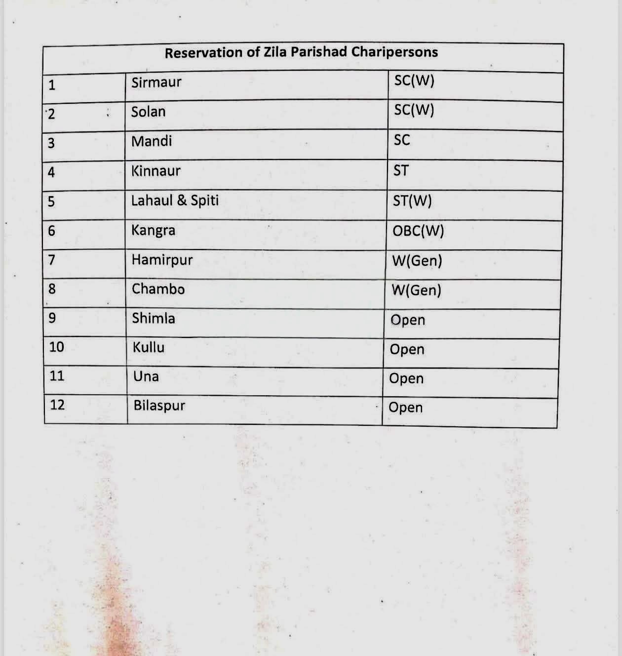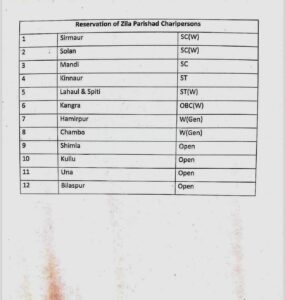हिमाचल: जिला परिषद चेयरमैन का आरक्षण रोस्टर जारी…