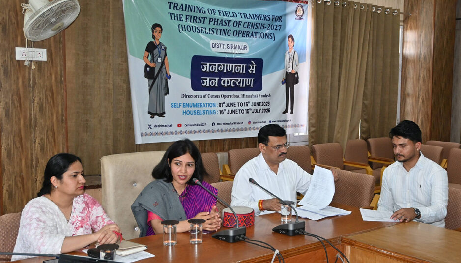 नाहन: जनगणना-2027 के लिए सिरमौर जिला के लिए नियुक्त 30 फील्ड ट्रेनर को तकनीकी एवं व्यावहारिक पहलुओं पर विस्तृत जानकारी तथा आवश्यक दिशा-निर्देश प्रदान करने के लिए 27 अप्रैल से 29 अप्रैल, 2026 तक चलने वाले तीन दिवसीय प्रशिक्षण कार्यक्रम का आयोजन आज बचत भवन नाहन में किया गया।