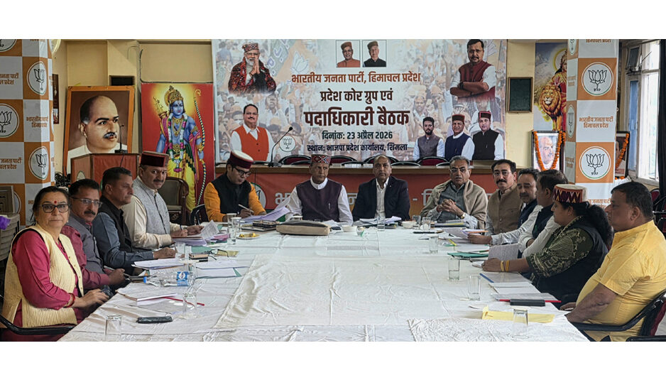 बैठक में नेता प्रतिपक्ष एवं पूर्व मुख्यमंत्री जयराम ठाकुर, प्रदेश प्रभारी श्रीकांत शर्मा, सह प्रभारी संजय टंडन, प्रदेश उपाध्यक्ष विपिन परमार, बिहारी लाल शर्मा, रश्मि धर सूद, राजेश ठाकुर, पवन काजल, बलबीर वर्मा, प्रदेश महामंत्री संजीव कटवाल, पायल वैद्य, प्रदेश सचिव वंदना योगी, वरिष्ठ प्रवक्ता त्रिलोक जमवाल, त्रिलोक कपूर, सुधीर शर्मा, संजीव शर्मा सहित अनेक वरिष्ठ नेता उपस्थित रहे।