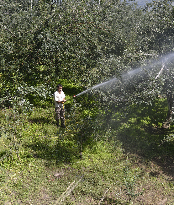 पौधों की नान-स्पर किस्में जिसमें रायल तथा रैड डिलिशियस प्रजातियां आती हैं में सामान्य टहनियों का विकास 10”-18” (25-45 सै.मी.) तक होना फल की गुणवत्ता को स्थिर रखता है और पौधों में बांछित फल उत्पादन प्राप्त होता है। यदि यह विकास इस स्तर से कम या अधिक हुआ है तो नत्रजन की मात्रा पौधों में फल की संख्या तथा रंग को नकारात्मक रूप से प्रभावित करती है तथा बूली एफिड रैड माईट, सैंजोस स्केल तथा कैंकर रोग की समस्याओं को बढ़ाने में सहायक है। अत: ऐसी परिस्थिति से बचें तथा पौधों के विकास का सही आंकलन करने के पश्चात ही नत्रजन की मात्रा का निर्धारण करें।
