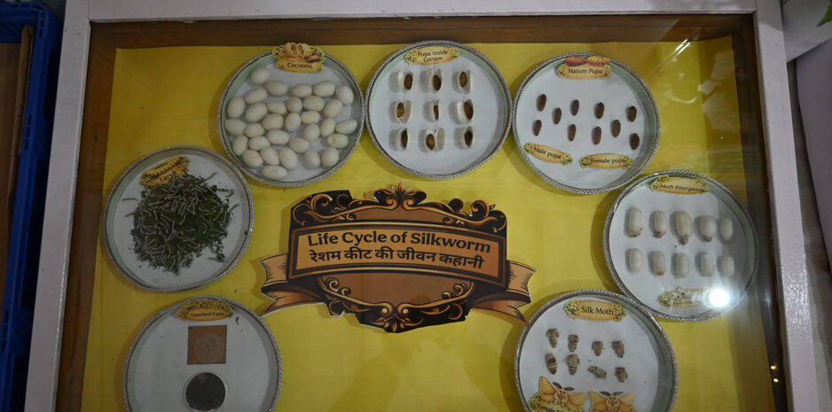 प्रदर्शनी में लोगों को रेशम कीट पालन से लेकर धागा निर्माण और उससे बने उत्पादों तक की पूरी प्रक्रिया की जानकारी प्रदान की जा रही है।