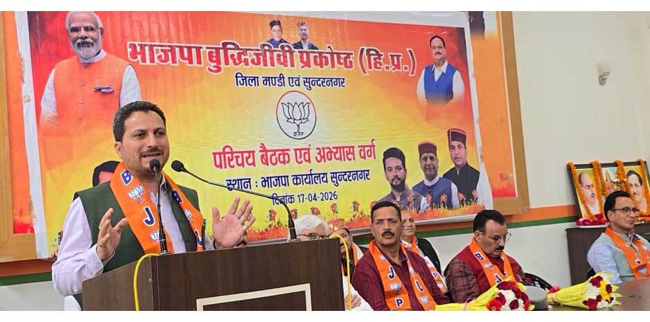 सुंदरनगर : सुंदरनगर में भारतीय जनता पार्टी, हिमाचल प्रदेश के बुद्धिजीवी प्रकोष्ठ द्वारा आयोजित जिला मंडी एवं सुंदरनगर की संयुक्त परिचय बैठक एवं अभ्यास वर्ग में का आयोजन हुआ जिसमें सयोंजक प्रो. रविंद्र ठाकुर,विधायक इंद्र सिंह गांधी, जिला अध्यक्ष मंडी निहाल चंद शर्मा,जिला महामंत्री सुन्दर नगर ओम प्रकाश, डॉ.ओम राज शर्मा एवं भीखम राम सहित अन्य पदाधिकारी एवं कार्यकर्ता उपस्थित रहे। मुख्य अतिथि के रूप में पहुंचे प्रदेश भाजपा के मुख्य प्रवक्ता एवं विधायक राकेश जमवाल ने कांग्रेस सरकार पर तीखा हमला बोला। इस अवसर पर आयोजित अभ्यास वर्ग में उन्होंने कार्यकर्ताओं और बुद्धिजीवी वर्ग को संबोधित करते हुए स्पष्ट राजनीतिक दिशा भी दी। उन्होंने कहा कि आज प्रदेश की जनता मुख्यमंत्री सुखविंदर सिंह सुक्खू की घोषणाओं और वादों पर बिल्कुल भी विश्वास नहीं करती, क्योंकि पिछले ढाई वर्षों में सरकार ने सिर्फ घोषणाएं की हैं, उन्हें धरातल पर उतारने का कोई ईमानदार प्रयास नहीं किया।