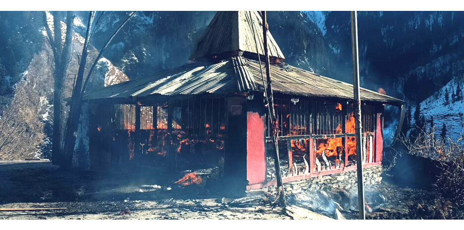 चंबा: चंबा जिले के भरमौर विस क्षेत्र की ग्राम पंचायत खुंदेल के गिरड़ में चट्टान पर निर्मित 700 साल पुराना गिरड़ माता मंदिर आग की भेंट चढ़ गया। अग्निकांड शुक्रवार दोपहर बाद 3:30 बजे के करीब हुआ। मंदिर में अचानक उठीं आग की लपटों के चलते देखते ही देखते पूरा मंदिर जलकर राख हो गया। मंदिर के भीतर संगमरमर, ब्लैक स्टोन समेत पीतल की मूर्तियों को नुकसान पहुंचा है। वहीं, देवदार की लकड़ियों पर काष्ठ कला से निर्मित मंदिर के जलने से लाखों का नुकसान हुआ है।