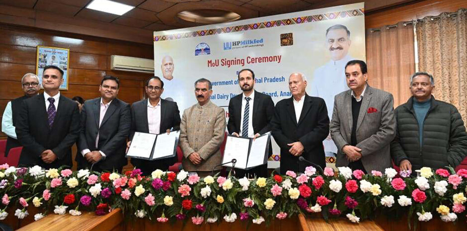 हिमाचल: प्रदेश सरकार तथा राष्ट्रीय डेयरी विकास बोर्ड के मध्य आज यहां मुख्यमंत्री ठाकुर सुखविन्द्र सिंह सुक्खू की उपस्थिति में तीन समझौता ज्ञापनों पर हस्ताक्षर किए गए। इन समझौता ज्ञापनों पर प्रदेश सरकार की तरफ से सचिव पशुपालन रितेश चौहान तथा प्रबंध निदेशक दि हिमाचल प्रदेश राज्य सहकारी दुग्ध उत्पादक प्रसंघ समिति अभिषेक वर्मा ने हस्ताक्षर किए, जबकि राष्ट्रीय डेयरी विकास बोर्ड के अध्यक्ष डॉ. मीनेश शाह ने बोर्ड की ओर से हस्ताक्षर किए। पहला समझौता ज्ञापन कांगड़ा मिल्क यूनियन का गठन एवं संचालन, जबकि दूसरा समझौता जिला सिरमौर के नाहन तथा सोलन जिला के नालागढ़ में 20 हजार लीटर प्रतिदिन क्षमता के दो दूध प्रसंस्करण संयंत्रों व जिला हमीरपुर के जलाड़ी और जिला ऊना के झलेड़ा में 20 हजार लीटर प्रतिदिन क्षमता के दो दुग्ध अभिशीतन केन्द्रों की स्थापना व तीसरा समझौता ज्ञापन मिल्कफेड में उद्यम संसाधन प्लानिंग सॉफ्टवेयर लागू करने के बारे में है।