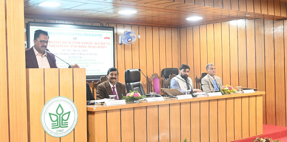 सोलन: डॉ. यशवंत सिंह परमार औद्यानिकी एवं वानिकी विश्वविद्यालय, नौणी में आज रासायनिक, जैविक, रेडियोलॉजिकल एवं परमाणु (CBRN) आपदाओं तथा औद्योगिक दुर्घटना तैयारी एवं जोखिम प्रबंधन विषय पर तीन दिवसीय प्रशिक्षण कार्यक्रम का शुभारंभ हुआ। इस प्रशिक्षण का आयोजन विश्वविद्यालय के पर्यावरण विज्ञान विभाग द्वारा जिला आपदा प्रबंधन प्राधिकरण (डीडीएमए), सोलन के सहयोग से किया जा रहा है।