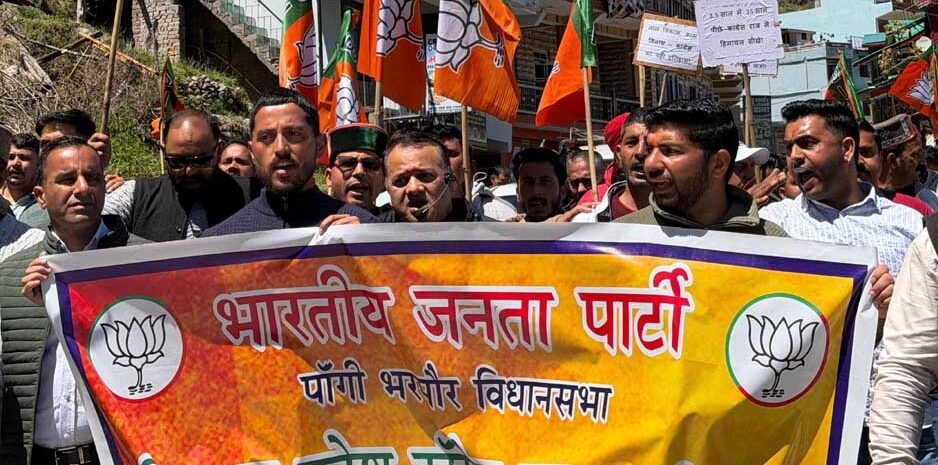 भरमौर: भरमौर में स्थानीय लोगों एवं कार्यकर्ताओं ने आज प्रदेश की वर्तमान सुक्खू सरकार की जनविरोधी नीतियों के खिलाफ एक जोरदार प्रदर्शन किया गया। इस विरोध प्रदर्शन में बड़ी संख्या में लोगों ने भाग लिया और सरकार के खिलाफ अपनी नाराजगी व्यक्त की। प्रदर्शनकारियों ने हाथों में झंडे और तख्तियां लेकर बाजार क्षेत्र से रैली निकाली तथा सरकार की नीतियों को आम जनता के हितों के खिलाफ बताया। इस दौरान वक्ताओं ने कहा कि सरकार द्वारा लिए जा रहे निर्णयों से आम जनता, किसान, युवा और कर्मचारियों को भारी कठिनाइयों का सामना करना पड़ रहा है। भाजपा विधायक डॉ. जनक राज ने कहा कि प्रदर्शन के दौरान प्रमुख रूप से निम्न मुद्दों को उठाया गया: